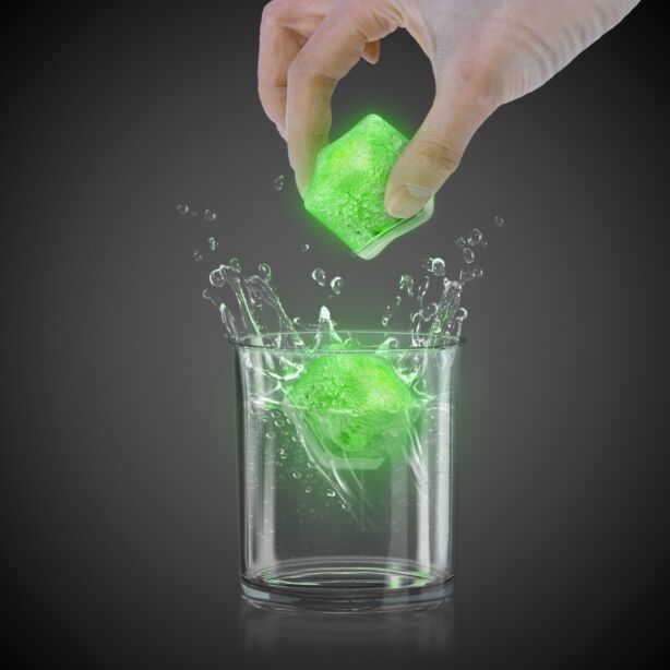 Add a splash of something bright with these premium Blank Green LED Lighted Ice Cubes! Each 1 3/8" frosted plastic ice cube comes with 3 different light settings that light up in various colors, so they are sure to be eye-catching at any event. From restaurants to bars to nightclubs, this is a great way to elevate any signature drink. Sold blank, you can use this bar accessory to promote drink sales in a variety of ways! Please note: this is a choking hazard that's not for children under 3 years old. Priced per piece, sold by the dozen. Patent #: D639,494
