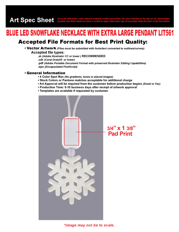 Beautiful Blue Light up Snowflake LED pendant necklace perfect for Winter events and holidays with an imprint area on the rectangle above the pendant. Snowflake, Christmas, Winter, Holidays, Pendant Necklace, LED Necklace, Light Up Necklace, LED Snowflake, Light Up Snowflake, Blue