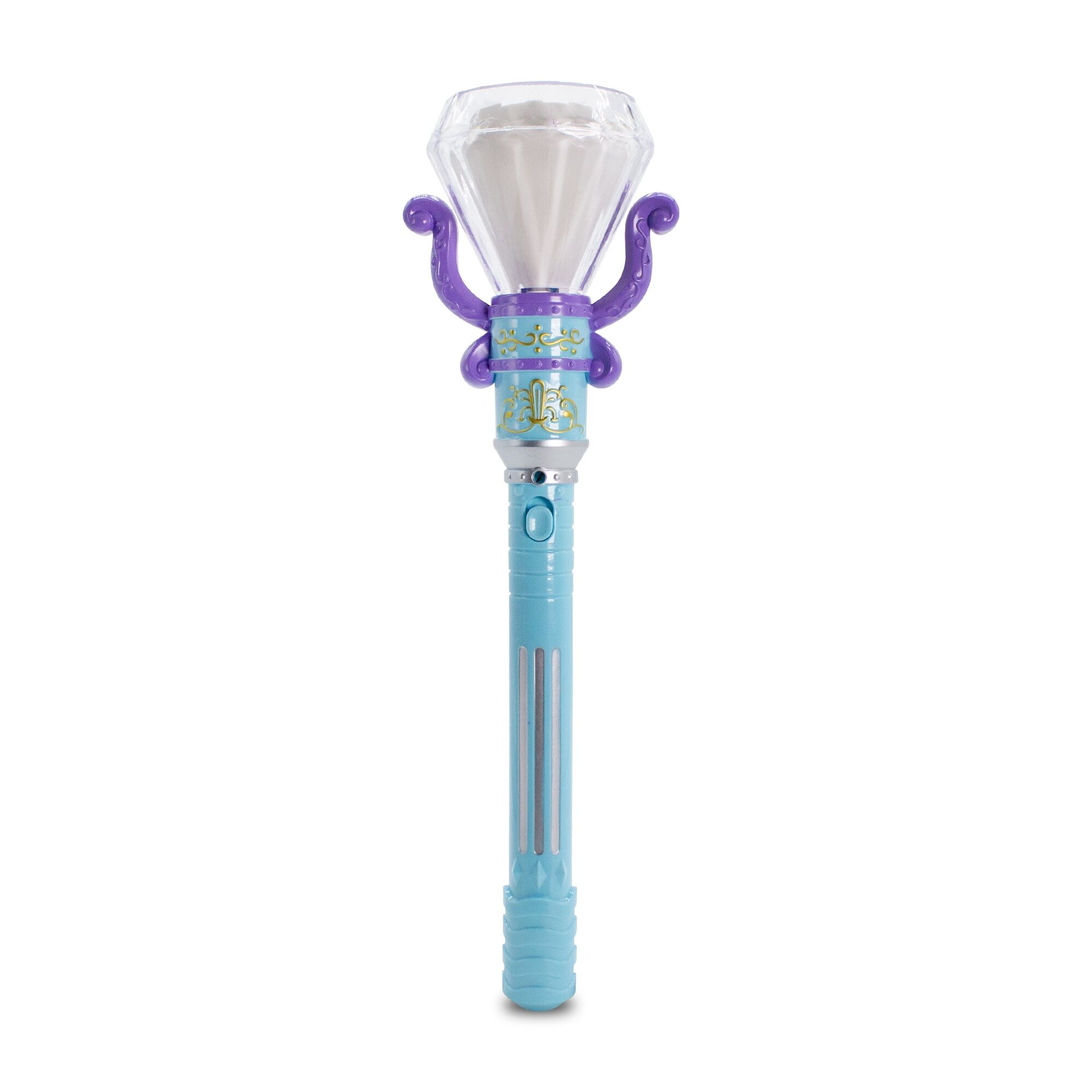 Bestow some bling upon party goers with our LED Rotating Diamond Wand. Slide the switch on the blue handle up to spin the multicolor LEDs inside the clear diamond. Slide the switch back down to turn it off. Perfect for the posh princesses all throughout the land. Each 13" LED wand uses 3 AA batteries that are included, installed, and replaceable. Add your logo or event to the top for the perfect birthday giveaway. Above pricing includes a 1 color imprint in 1 location. For all imprinting add a Set-up fee of $55 (v). We may offer additional locations and up to 4 spot colors, PMS matches acceptable @ $14 (v) per color. For each additional location and for each additional spot color add a Set-up fee of $55 (v) and a running charge of $.25 (v) per color, per location. Repeat set up fees apply. Call for details. Imprint Minimum is 96 pcs. Imprint Method: Label/Decal Only. Production Time: 10 business days after receipt of artwork and approval.