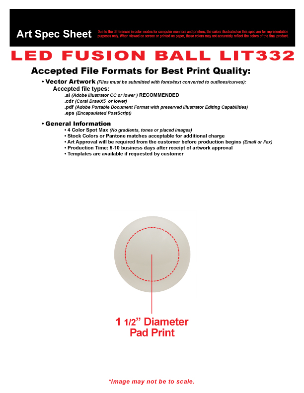 Above pricing includes a 1 color imprint in 1 location. For all imprinting add a Set-up fee of $55 (v). We may offer additional locations and up to 4 spot colors, PMS matches acceptable @ $14 (v) per color. For each additional location and for each additional spot color add a Set-up fee of $55 (v) and a running charge of $.25 (v) per color, per location. Imprint Minimum is 192 pcs. Imprint Method: Pad Print Only. Production Time: 10 business days after receipt of artwork and approval.