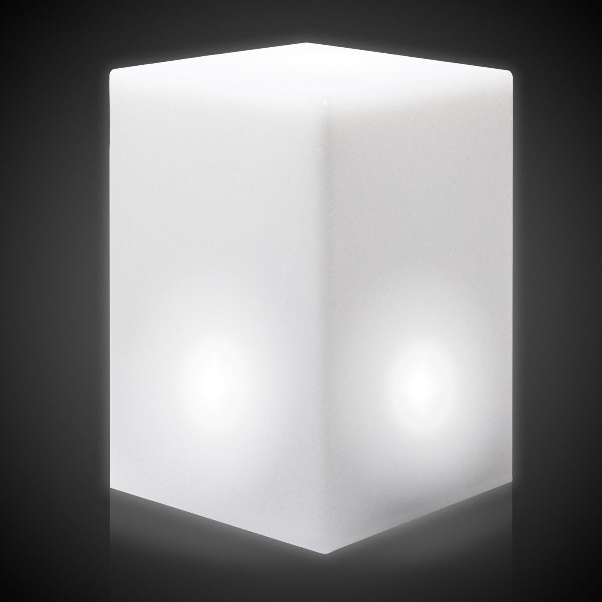 Light up your events in style with our customizable LED Waterproof Cube! Measuring 4" x 4" x 5 1/2", this versatile light-up cube is perfect for any occasion. It features 15 vibrant colors and 4 unique modes—flash, strobe, fade, and smooth—all easily controlled via the included 24-button remote. Each cube comes with a USB charging cord, offering 8-15 hours of illumination on a 3-6 hour full charge.