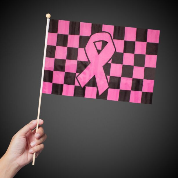 Our 12" x 18" pink ribbon checkered flags are priced by the dozen. Each flag features a 24 inch wooden dowl rod. Priced per flag.